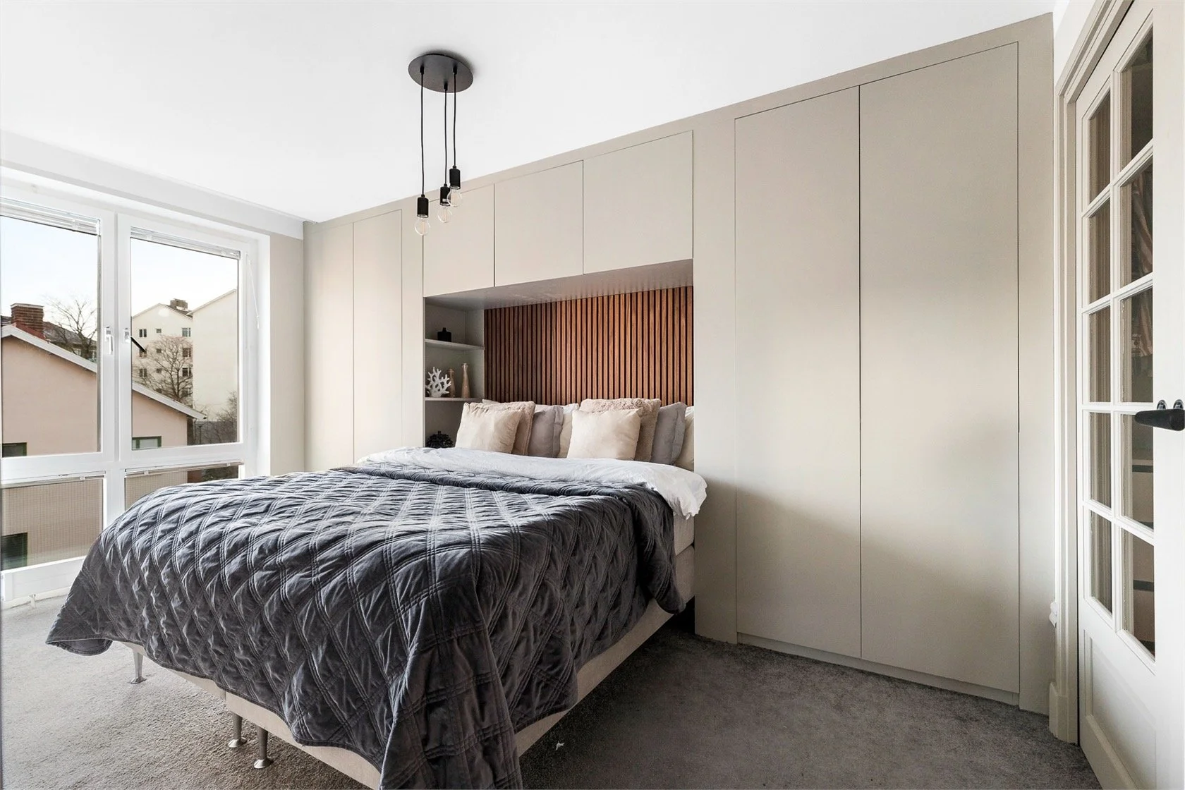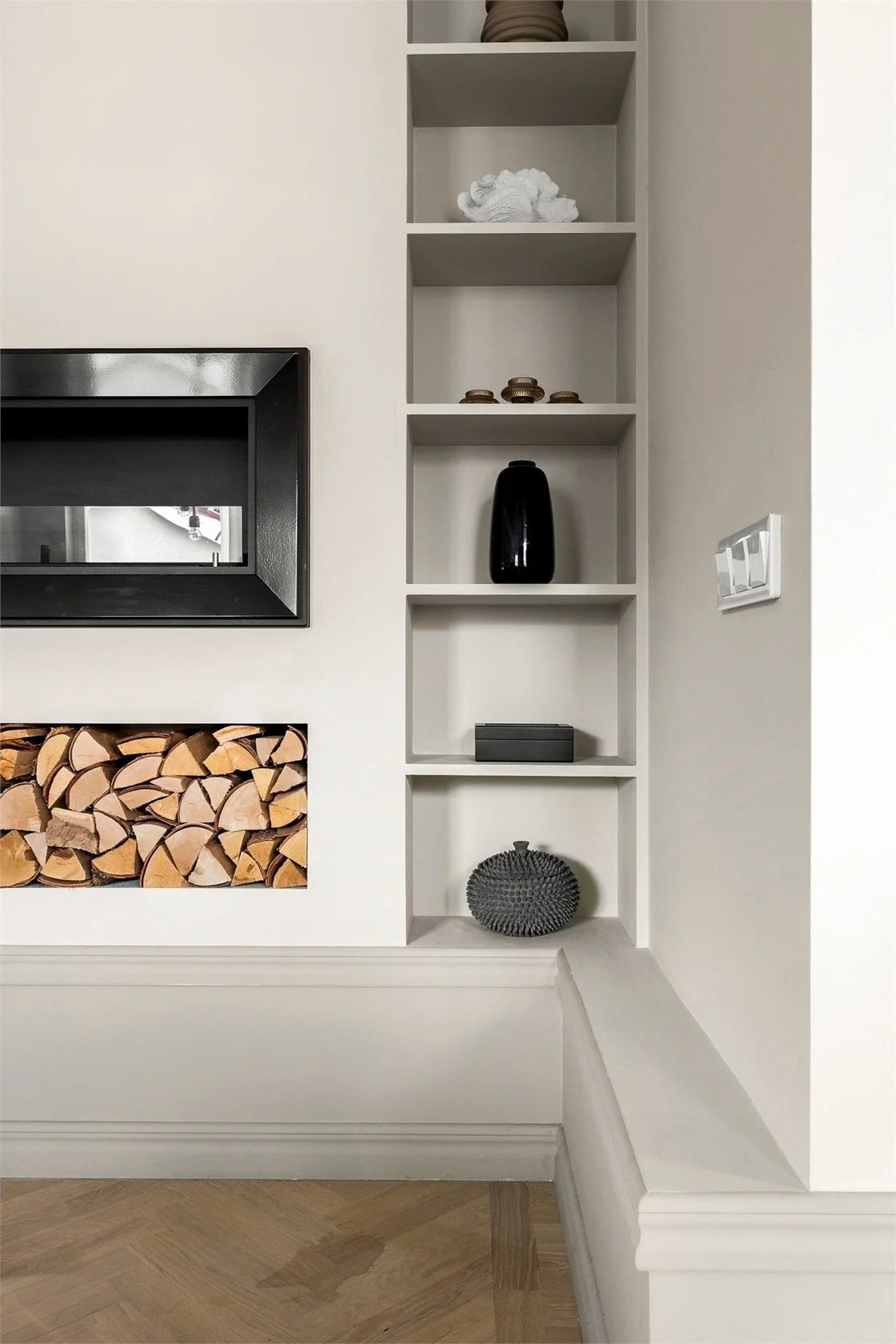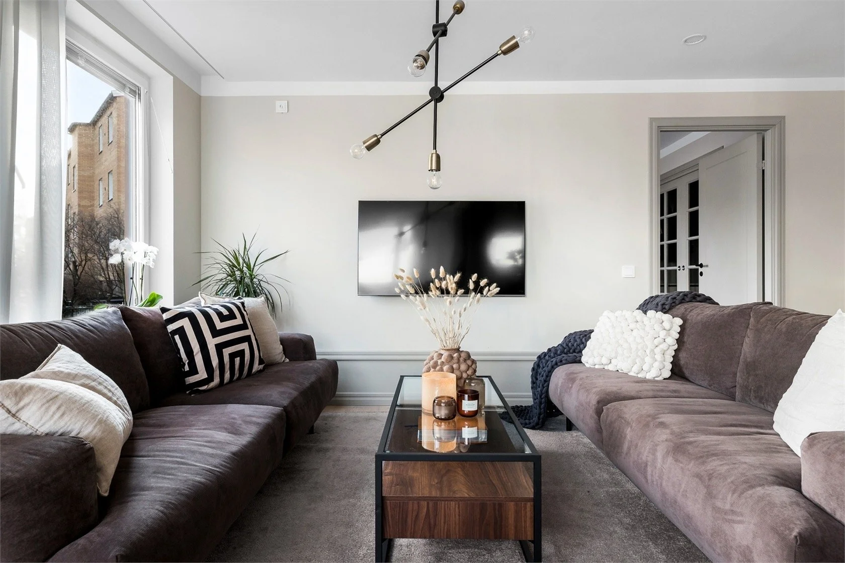 På Gjuteribacken i Sundbyberg gjorde vi en totalrenovering från golv till tak. Allt är nytt från badrum, kök, el, ytskikt, fiskbensparkett, platsbyggnationer och till och med en eldstad för extra mysfaktor.