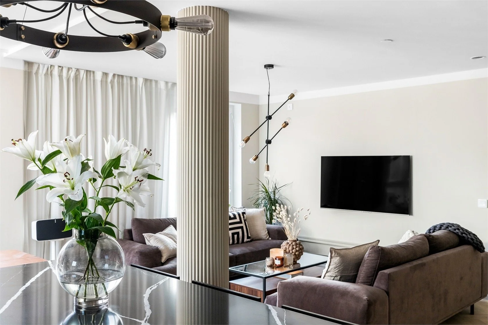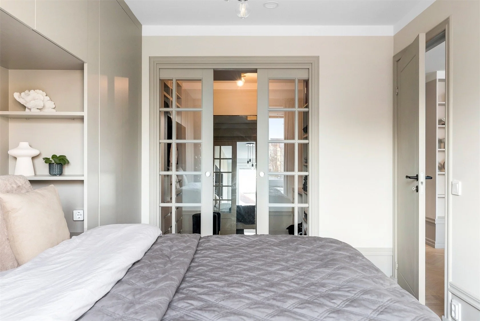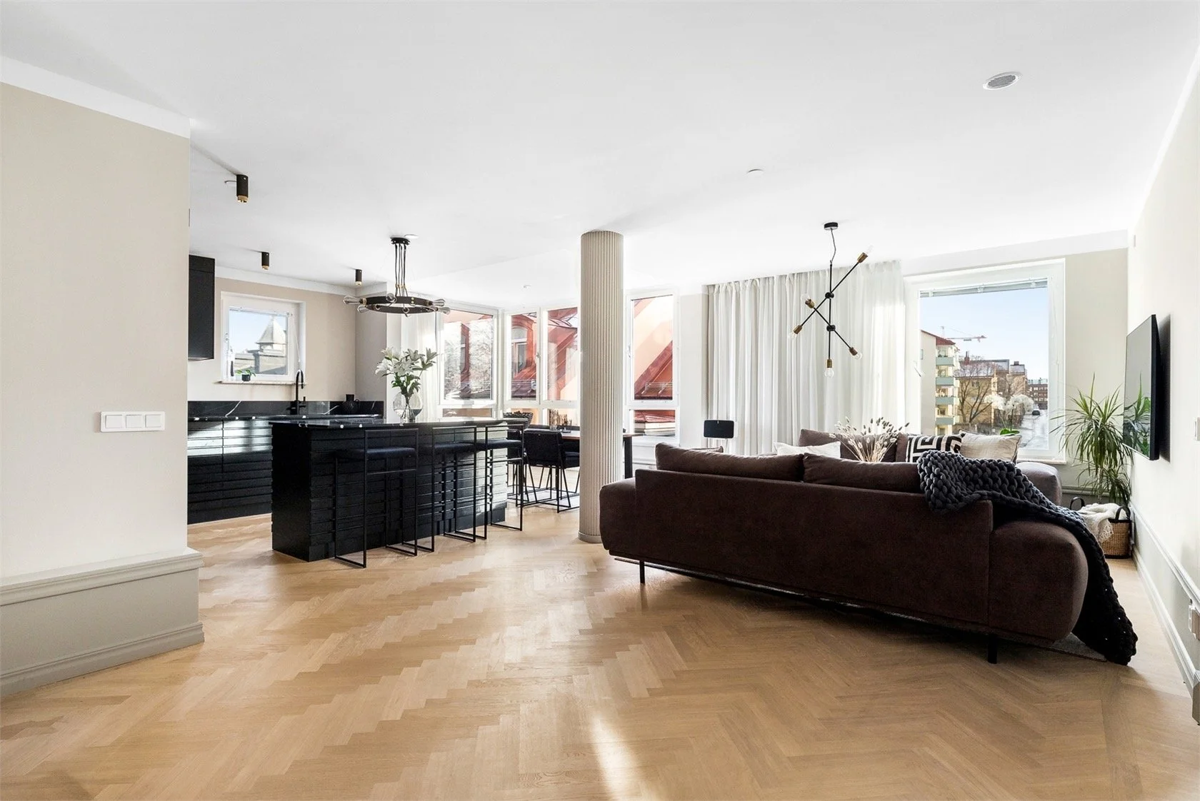 På Gjuteribacken i Sundbyberg gjorde vi en totalrenovering från golv till tak. Allt är nytt från badrum, kök, el, ytskikt, fiskbensparkett, platsbyggnationer och till och med en eldstad för extra mysfaktor.