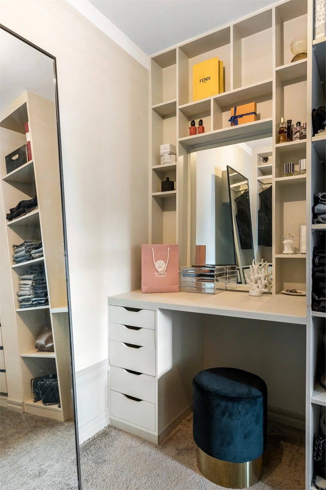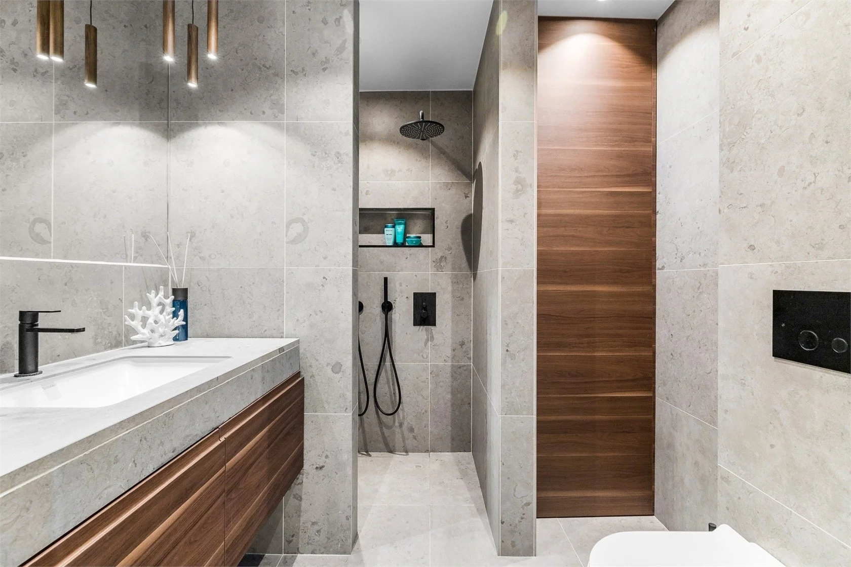 Vi byggde också en walk-in-closet och en sminkhörna, helt anpassade efter kundens önskemål. Resultatet blev ett modernt hem med mycket personlighet – och detaljer som verkligen gör skillnad.
